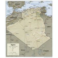 Algeria large scale political map with roads, railroads and major cities - 2001. Political map of Algeria.