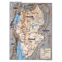 Rwanda and Burundi detailed political map with roads, major cities, airports and ports - 1996. Political map of Rwanda and Burundi with roads, major cities, airports and ports.