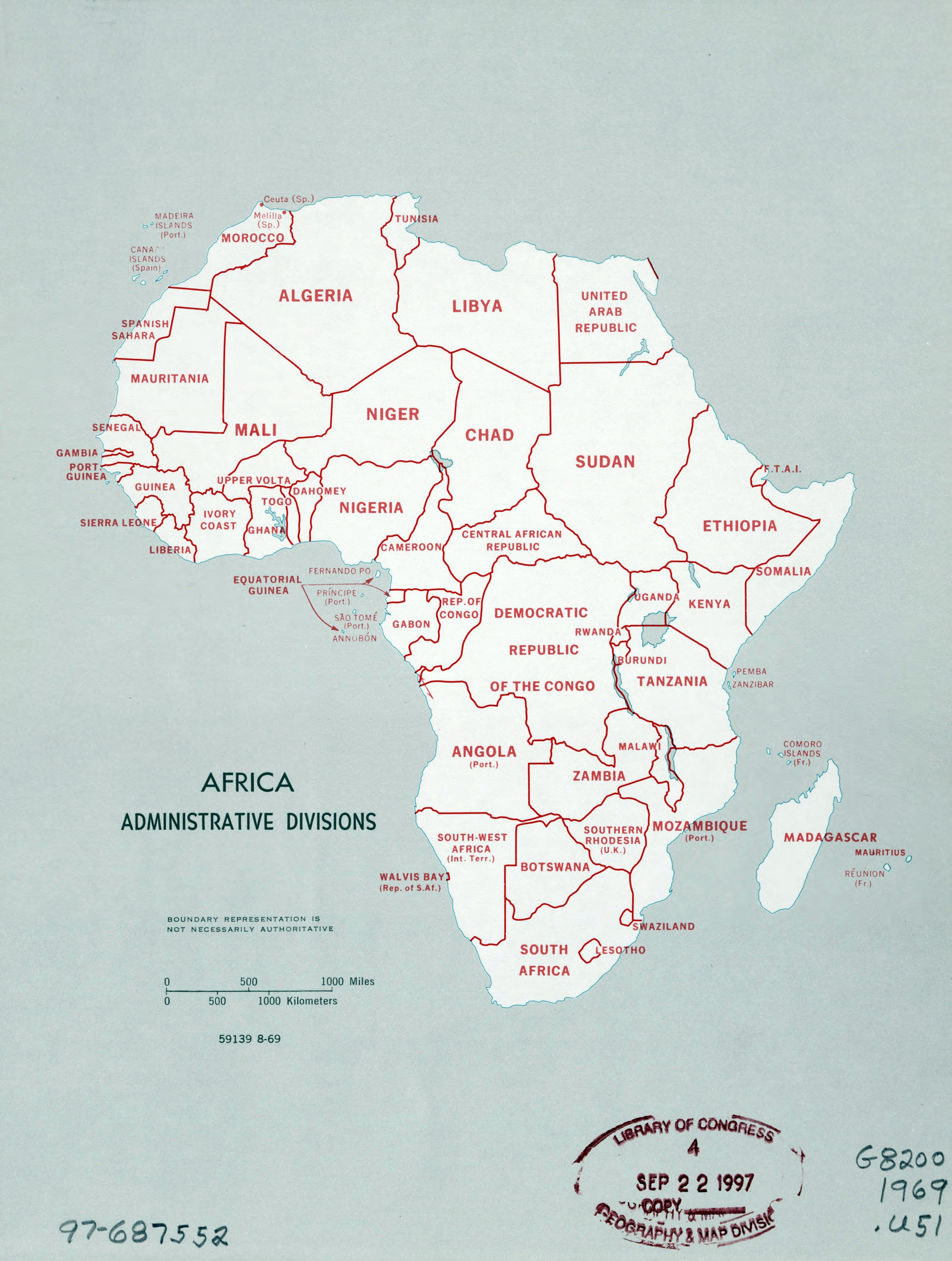 Africa large detailed administrative divisions map - 1969. Administrative divisions map of Africa - 1969.