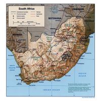 South Africa detailed political and administrative map with relief, roads, railroads and major cities - 2005. Political and administrative map of South Africa with relief, roads, railroads and major cities.