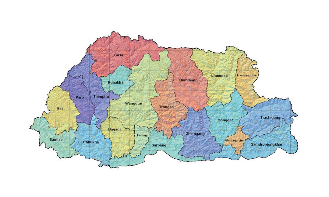 Bhutan detailed administrative and relief map. Detailed administrative and relief map of Bhutan.