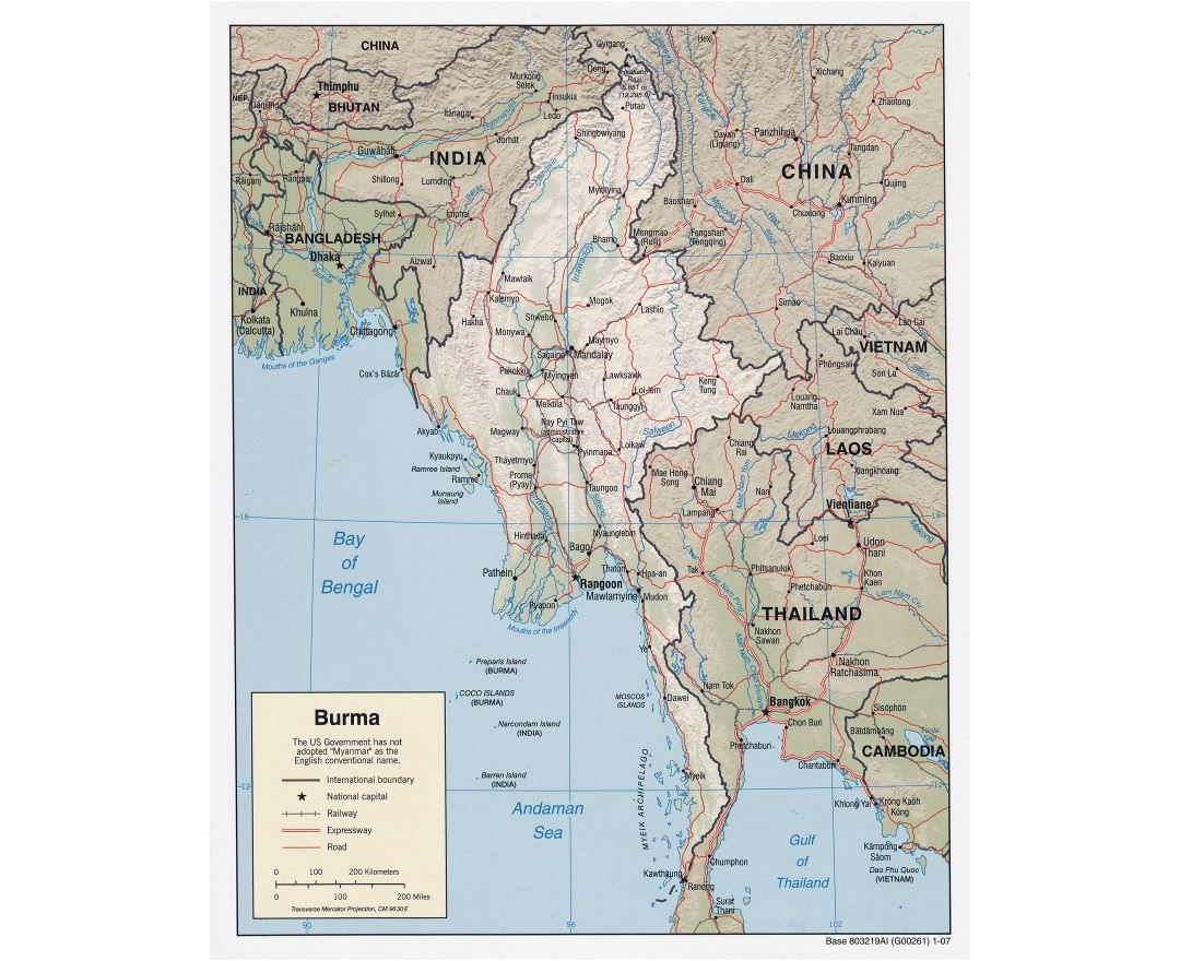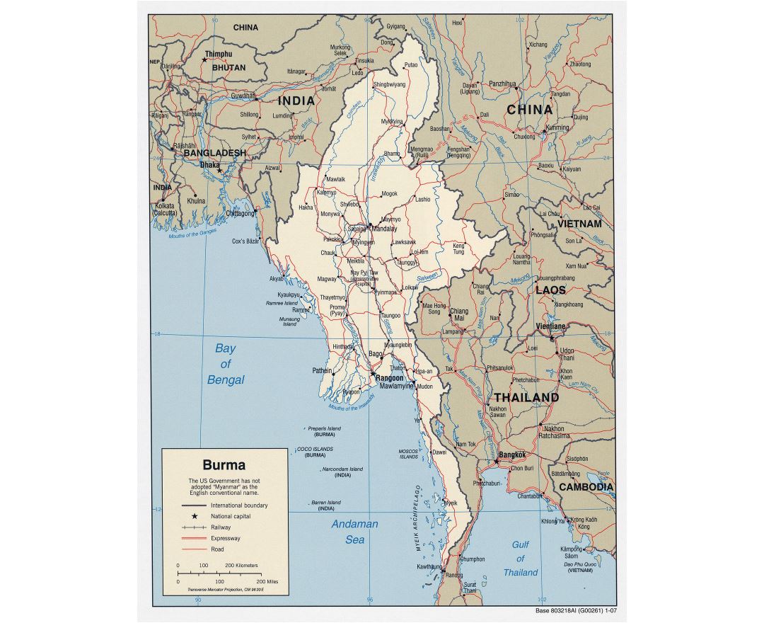 Myanmar, officially the Republic of the Union of Myanmar and also known as Burma, is a sovereign state in Southeast Asia bordered by Bangladesh, India, China, Laos and Thailand. One-third of Myanmar's total perimeter of 1,930 km (1,200 miles) forms an uninterrupted coastline along the Bay of Bengal and the Andaman Sea. The country's 2014 census revealed a much lower population than expected, with 51 million people recorded. Myanmar is 676,578 square kilometres (261,227 sq mi) in size. Its capital city is Naypyidaw and its largest city is Yangon (Rangoon).