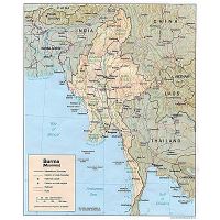Myanmar (Burma) large relief map. Large relief map of Myanmar (Burma).