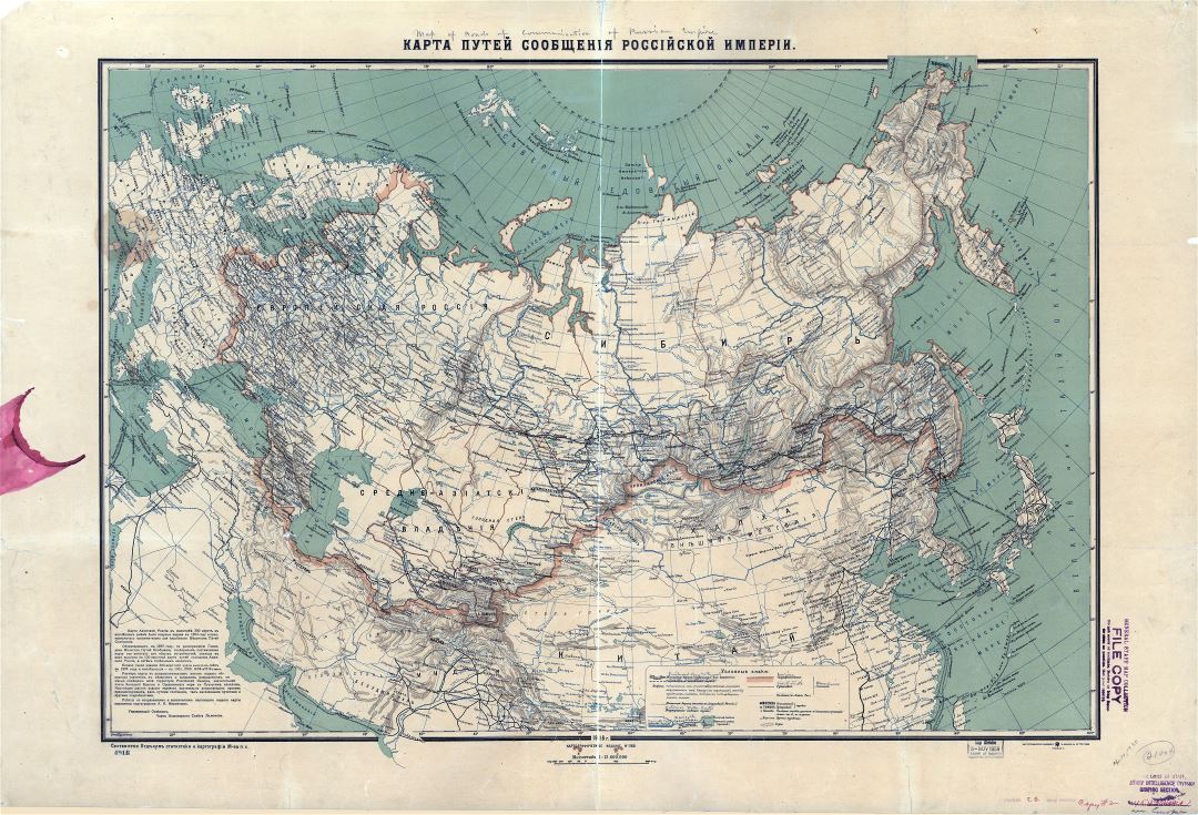 Russian Empire large detailed old transportation map with relief, railroads, navigable rivers, highways, steamship lines and cities - 1916. Old transportation map of Russian Empire.