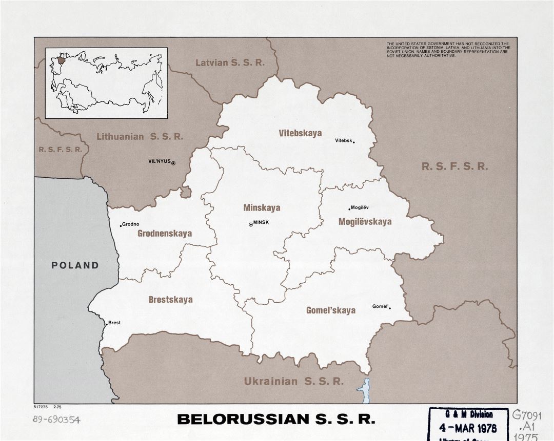 Belorussian S.S.R. large detail administrative divisions map - 1975. Administrative divisions map.