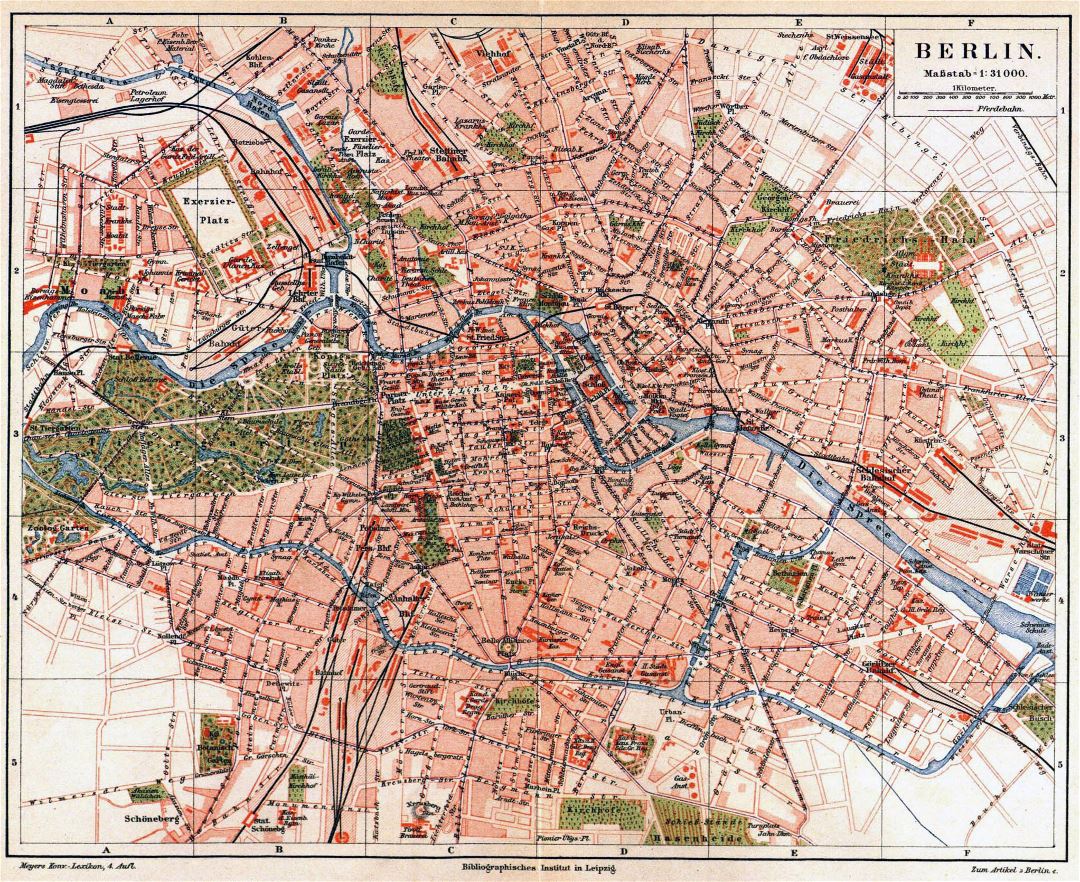 Berlin large old map. Large old map of Berlin. Berlin card.