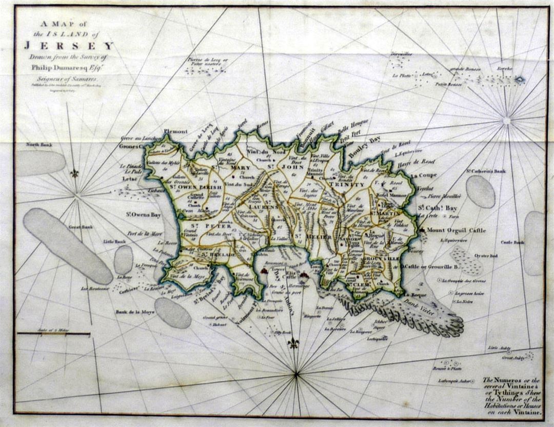 Jersey detailed old map with roads. Detailed old map of Jersey with roads.