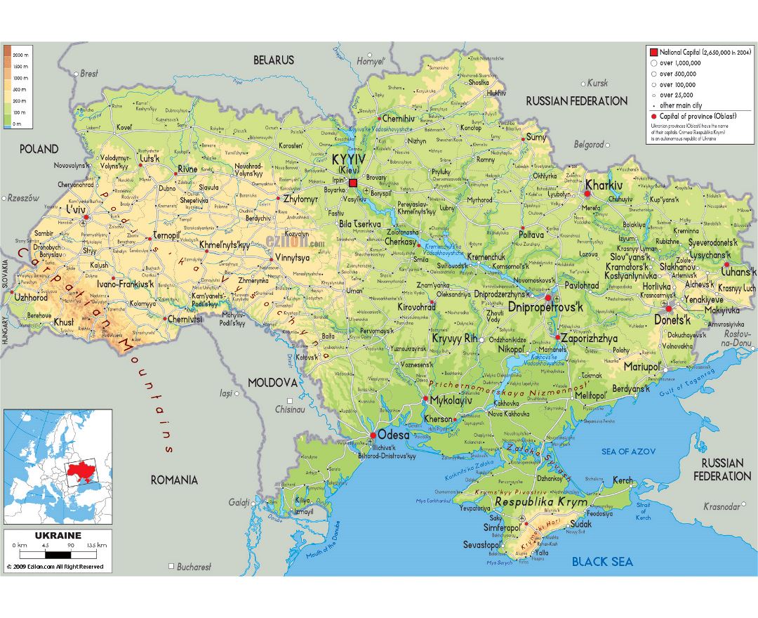 Ukraine is a sovereign state in Eastern Europe, bordered by Russia to the east and northeast, Belarus to the northwest, Poland and Slovakia to the west, Hungary, Romania, and Moldova to the southwest, and the Black Sea and Sea of Azov to the south and southeast, respectively. Ukraine is currently in territorial dispute with Russia over the Crimean Peninsula which Russia annexed in 2014 but which Ukraine and most of the international community recognise as Ukrainian. Including Crimea, Ukraine has an area of 603,628 sq km (233,062 sq mi), making it the largest country entirely within Europe and the 46th largest country in the world, and a population of about 44.5 million, making it the 32nd most populous country in the world.