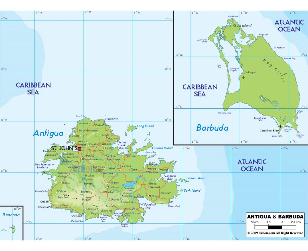 Antigua and Barbuda is a twin-island country in the Americas, lying between the Caribbean Sea and the Atlantic Ocean. It consists of two major inhabited islands, Antigua and Barbuda, and a number of smaller islands (including Great Bird, Green, Guinea, Long, Maiden and York Islands and further south, the island of Redonda). The permanent population numbers about 81,800 (at the 2011 Census) and the capital and largest port and city is St. John's, on Antigua.