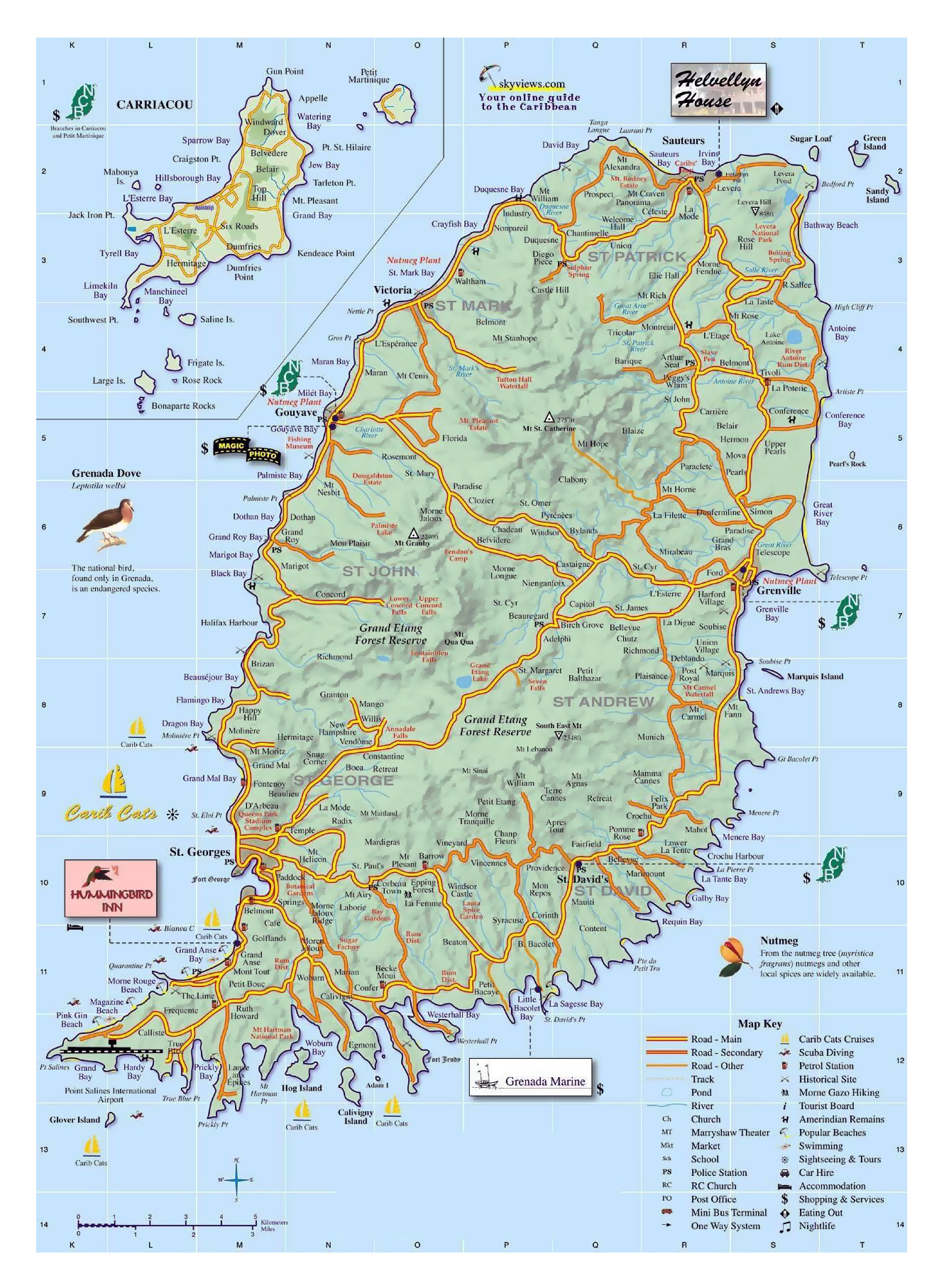 Grenada large travel map with other marks. Large travel map of Grenada with other marks.