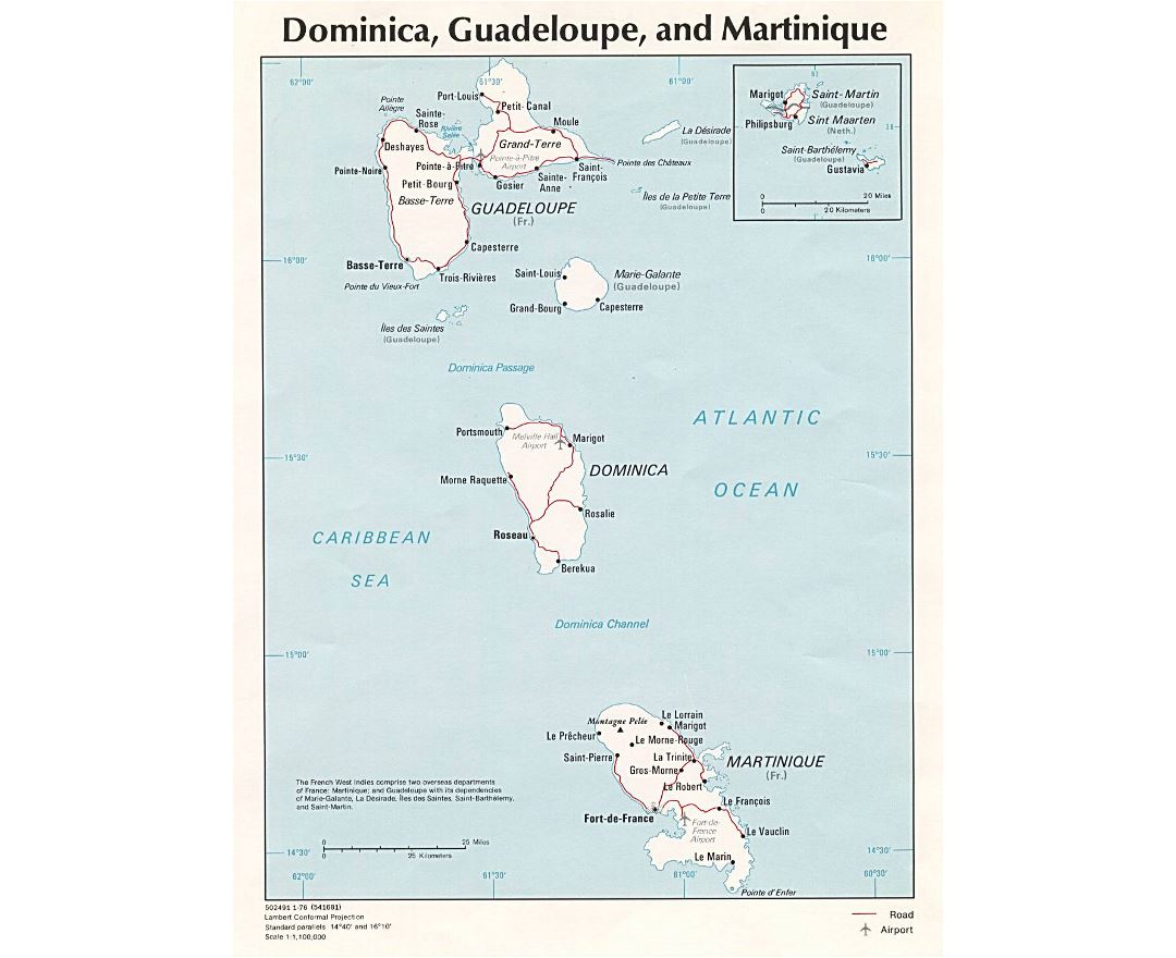 Martinique is an insular region of France located in the Lesser Antilles in the eastern Caribbean Sea, with a land area of 1,128 square kilometres (436 sq mi) and a population of 385,551 inhabitants as of January 2013. Like Guadeloupe, it is an overseas region of France, consisting of a single overseas department. One of the Windward Islands, it is directly north of Saint Lucia, southeast of Puerto Rico, northwest of Barbados, and south of Dominica.