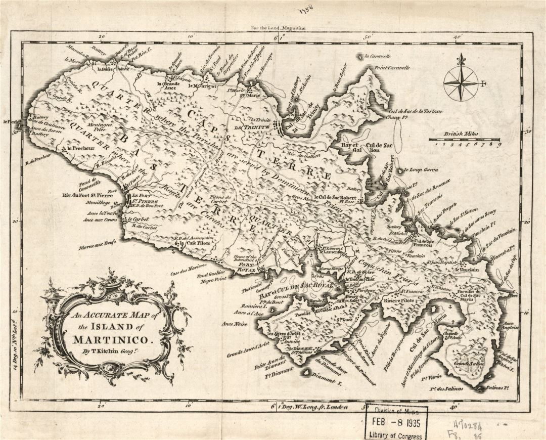 Martinique large detailed old map with relief and other marks - 1758. Large detailed old map of Martinique with relief and other marks - 1758.