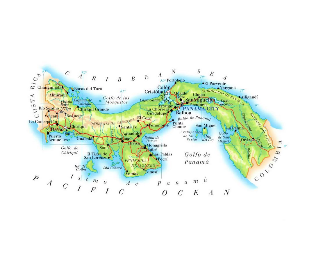 Panama, officially called the Republic of Panama, is a country in Central America. It is bordered by Costa Rica to the west, Colombia (in South America) to the southeast, the Caribbean Sea to the north and the Pacific Ocean to the south. The capital and largest city is Panama City, whose metropolitan area is home to nearly half of the country's 4 million people.