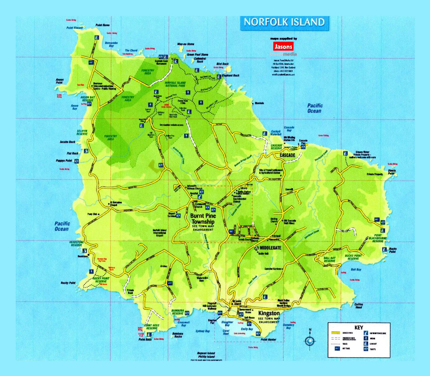 Norfolk Island detailed travel map with roads and marks. Detailed travel map of Norfolk Island with roads and marks.